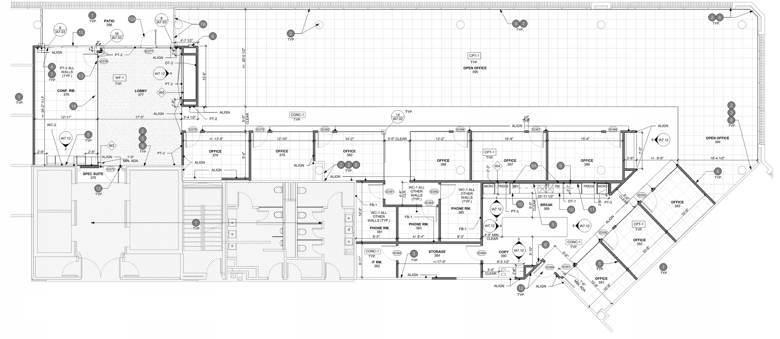 Suite 375 - Arbor Scottsdale, Arizona, United StatesProject completed while working at George Oliver Floor Plan Development Demolition plan & rcp illustrating construction documentation development. Reflected ceiling plan illustrating construction documentation development. Means of egress plan illustrating life safety and code coordination. Floor and finish plan illustrating construction documentation development. Design Elements Custom Millwork - Selected Examples Break Area millwork Break Area Island Conference Room Millwork Lobby, Cactus Wall